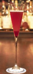 背の高いシャンパングラスをカウンターの上に置き、カシスを少し入れ、シャンパンを静かに注いで、軽くステアしたら出来上がりだ。