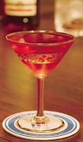 ストレーナーを被せ、冷しておいたカクテルグラスに静かに注ぎ、その男性の前のコースターの上に運んだ。