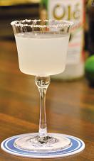 グラスを軽く叩いて余分な塩を落とし、カウンターの上に置いた。シェーカーの中に材料を入れ、氷を入れて素早くシェイクする。そして、塩の付いたカクテルグラスに静かに注いだ。